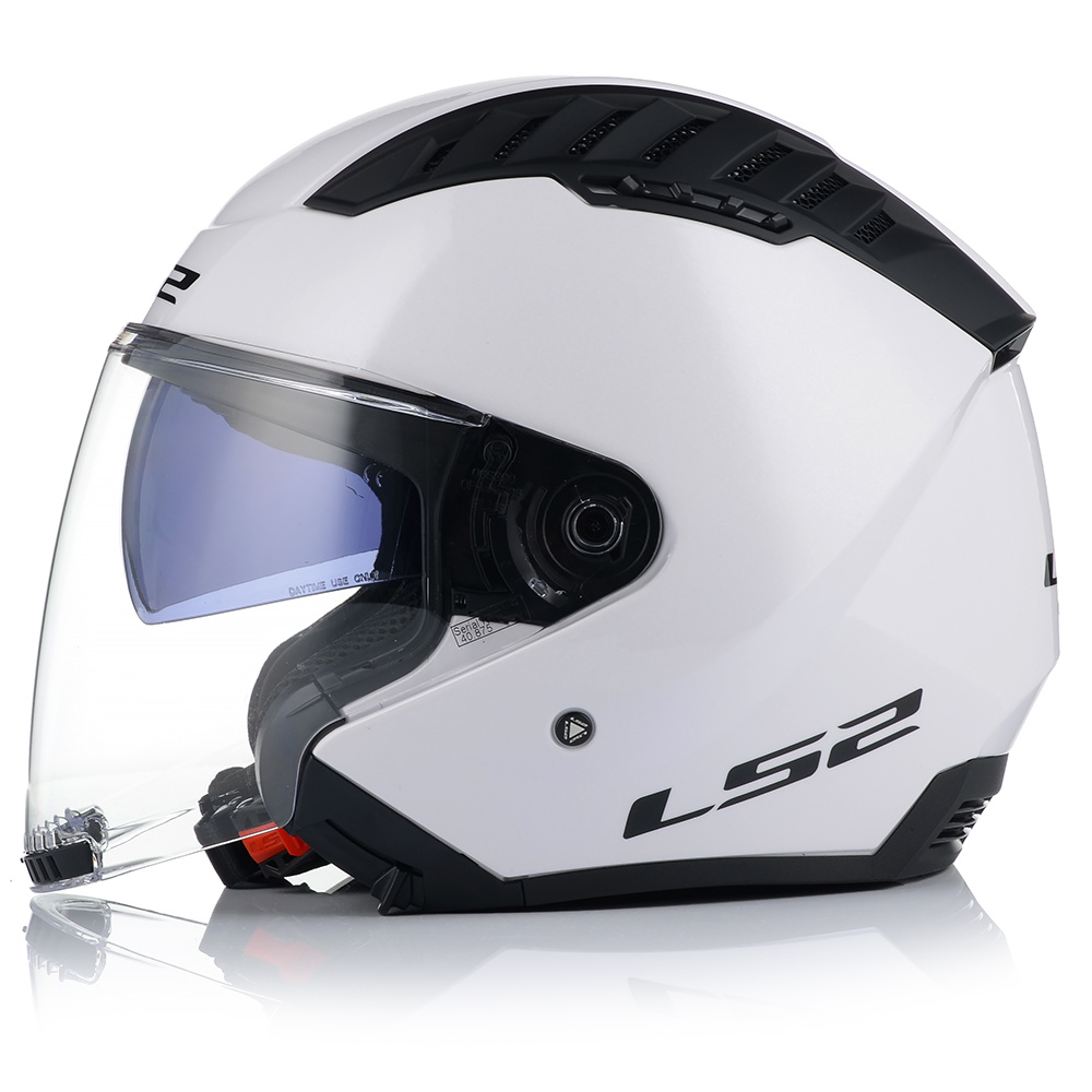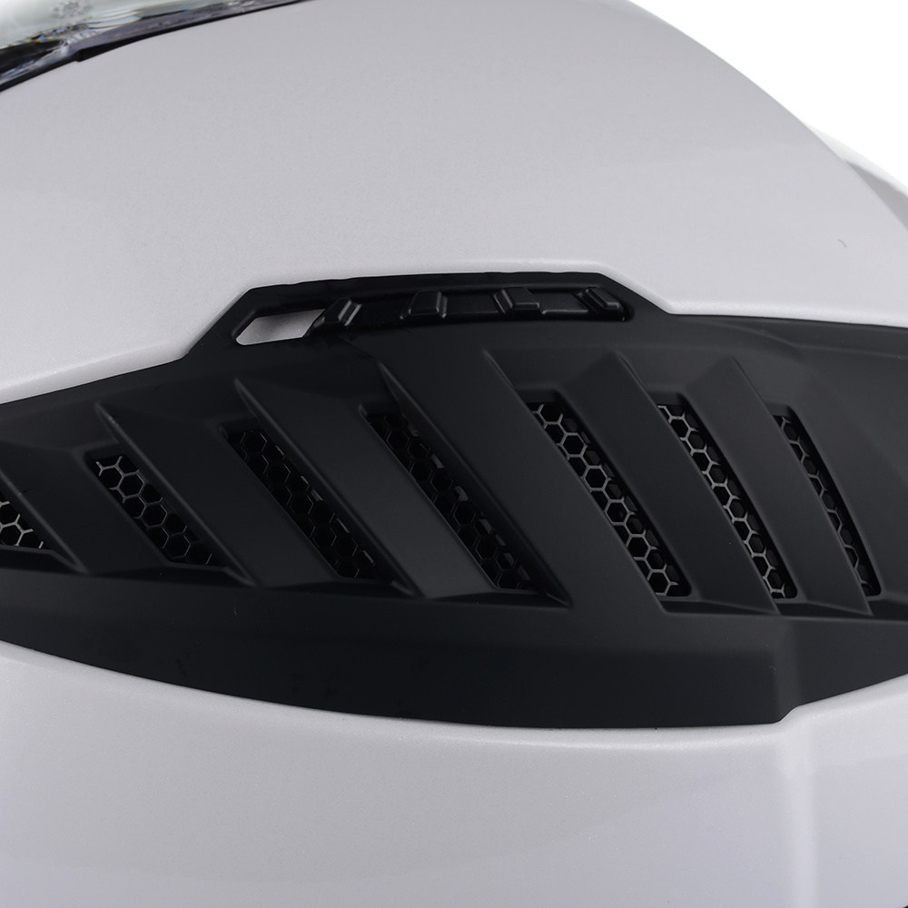Szeroki wizjer z powłoką zapobiegającą zarysowaniom. Opuszczana osłona przeciwsłoneczna.