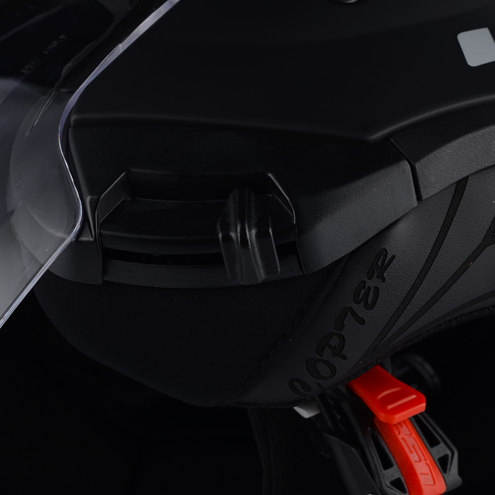 - Blenda przeciwsłoneczna (ruchoma, chowana w skorupę kasku)
