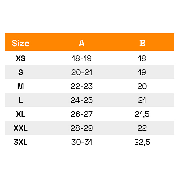 - aby prawidłowo dopasować rozmiar należy sugerować się podaną tabelą