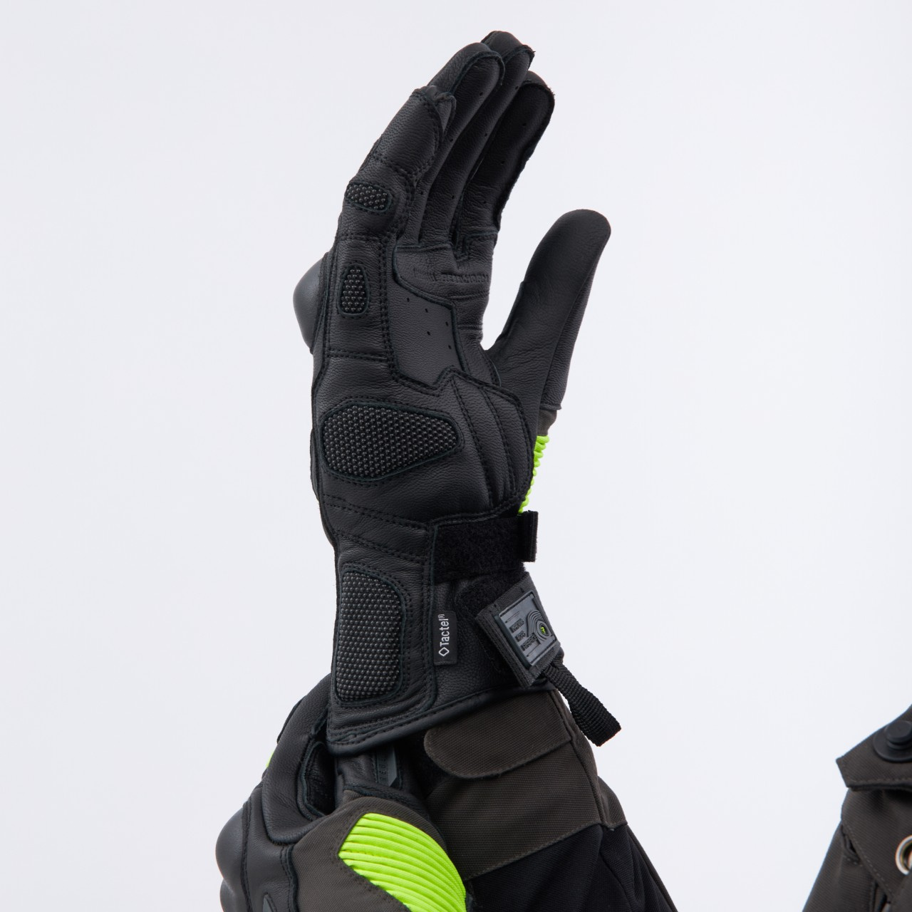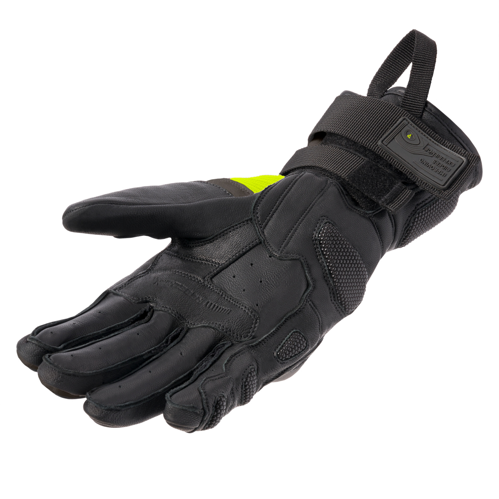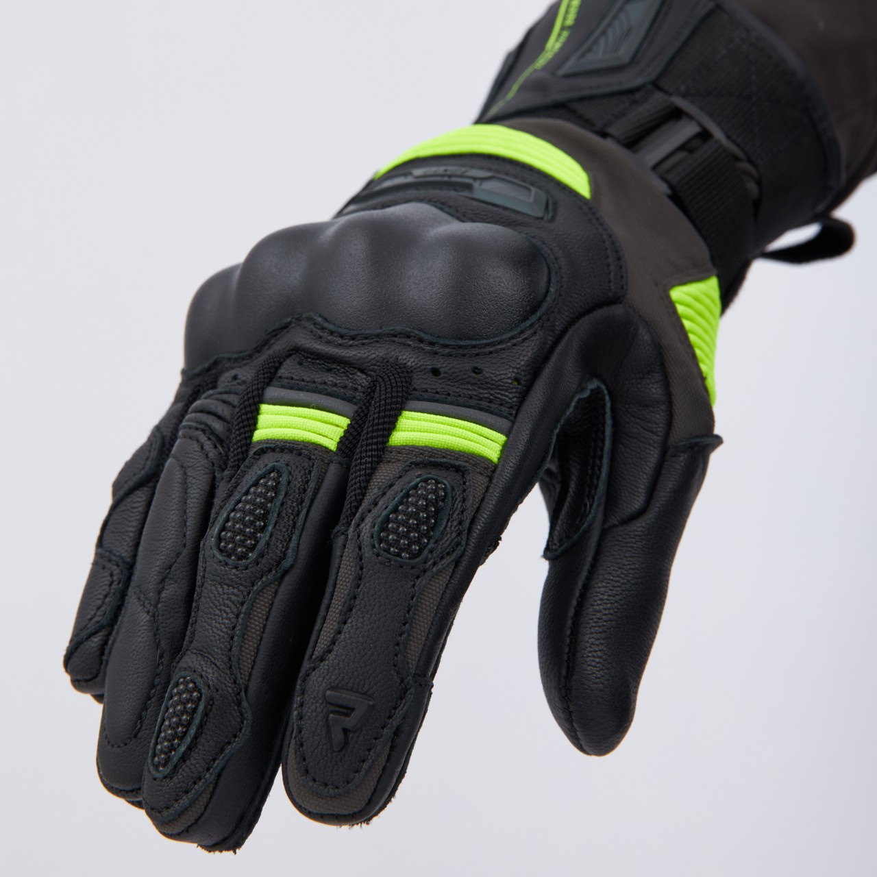 Turystyczne rękawice motocyklowe Rebelhorn Range mają miękkie ochraniacze kostek SAS-TEC® i wstawki absorbujące siłę uderzenia na wewnętrznej stronie dłoni i mankiecie. Spód rękawicy wzmocniono materiałem Superfabric® i dodatkową warstwą skóry chroniącą przed przetarciem.