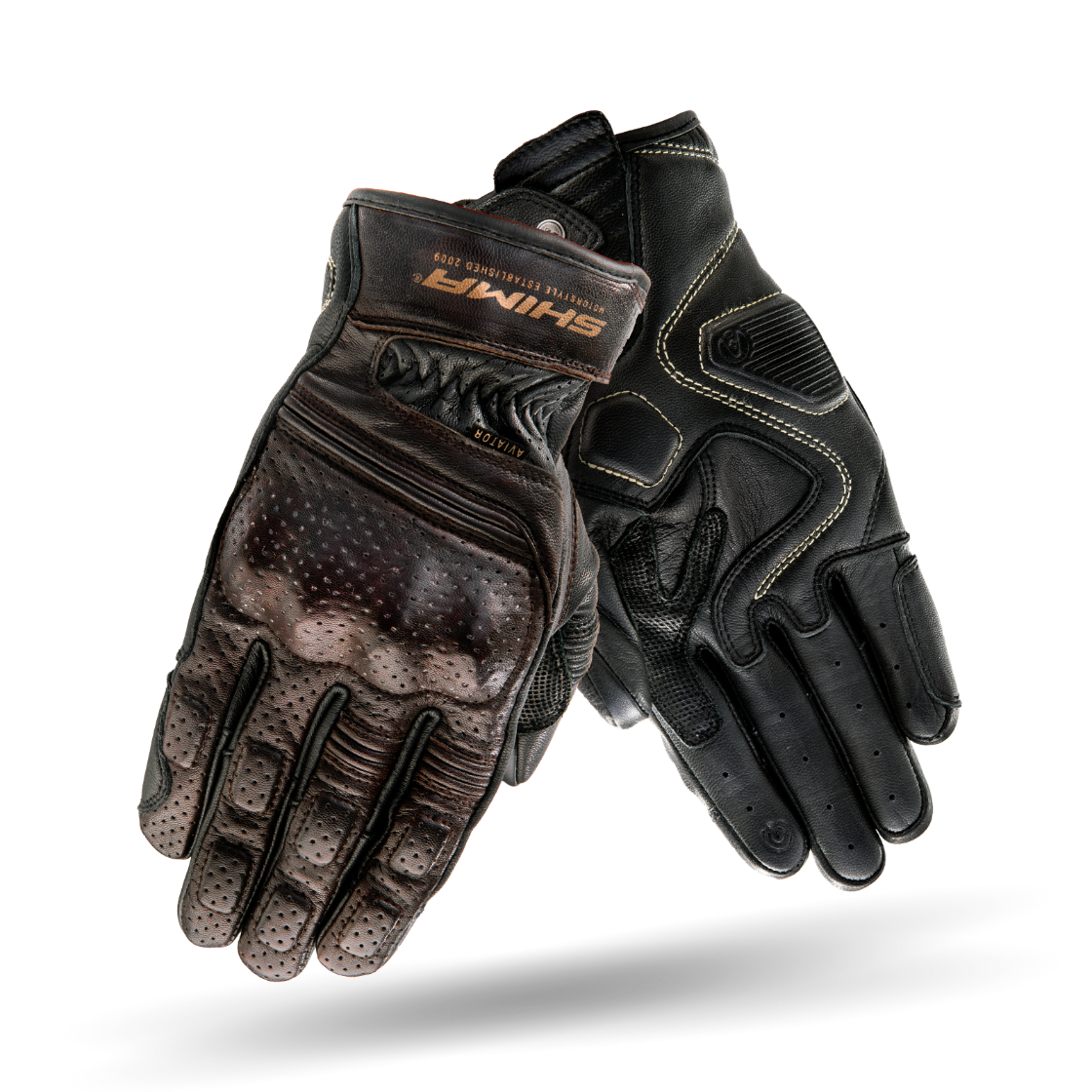 RĘKAWICE MOTOCYKLOWE | SHIMA AVIATOR DARK BROWN | MĘSKIE SKÓRZANE + GRATIS