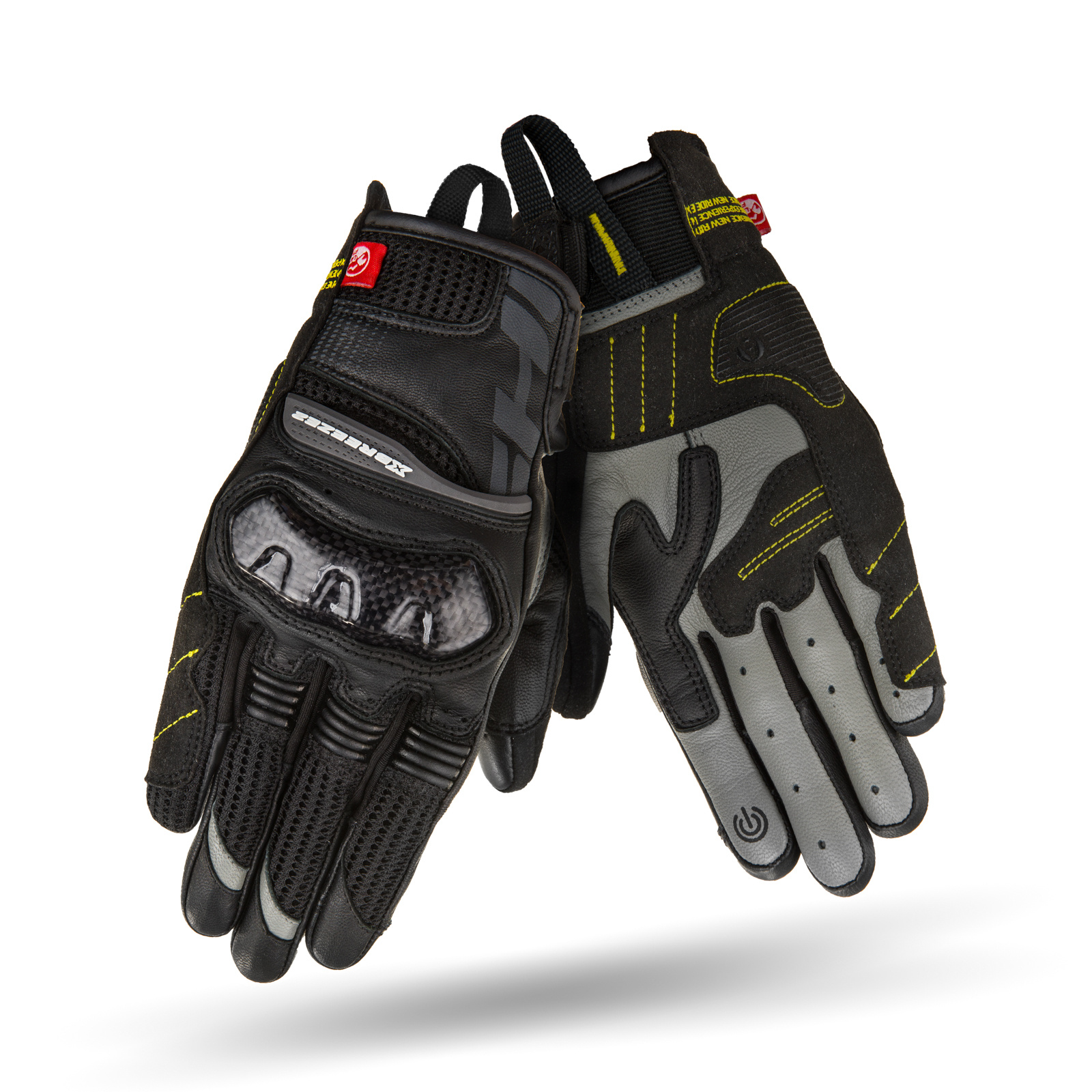 Krótkie rękawice X-BREEZE 2 to połączenie ochrony, komfortu i wentylacji. Ochronę kostek zapewnia twardy protektor wzmocniony włóknem węglowym, a bok oraz obszar nadgarstka pokryte są panelami z absorberami impaktu uderzenia ArmorPlus. Wstawki z naturalnej skóry na wewnętrznej części dłoni poprawiają trwałość rękawic, a tkanina Hi-flow 3D Mesh na palcach i w okolicy mankietu zapewnia dodatkową cyrkulację powietrza.