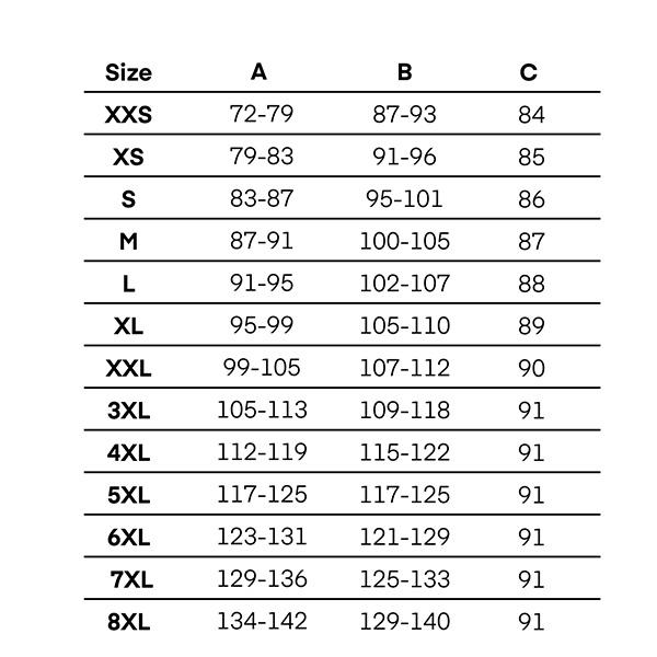 • aby prawidłowo dopasować spodni należy sugerować się podaną tabelą