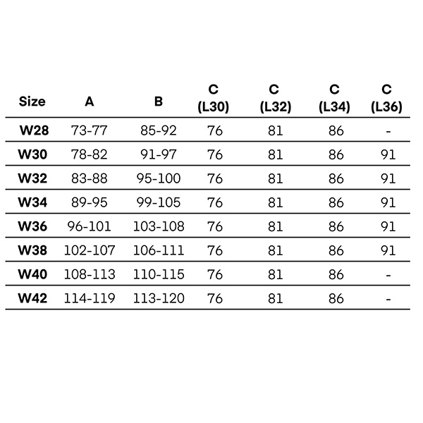 - aby prawidłowo dopasować spodnie należy sugerować się podaną tabelą