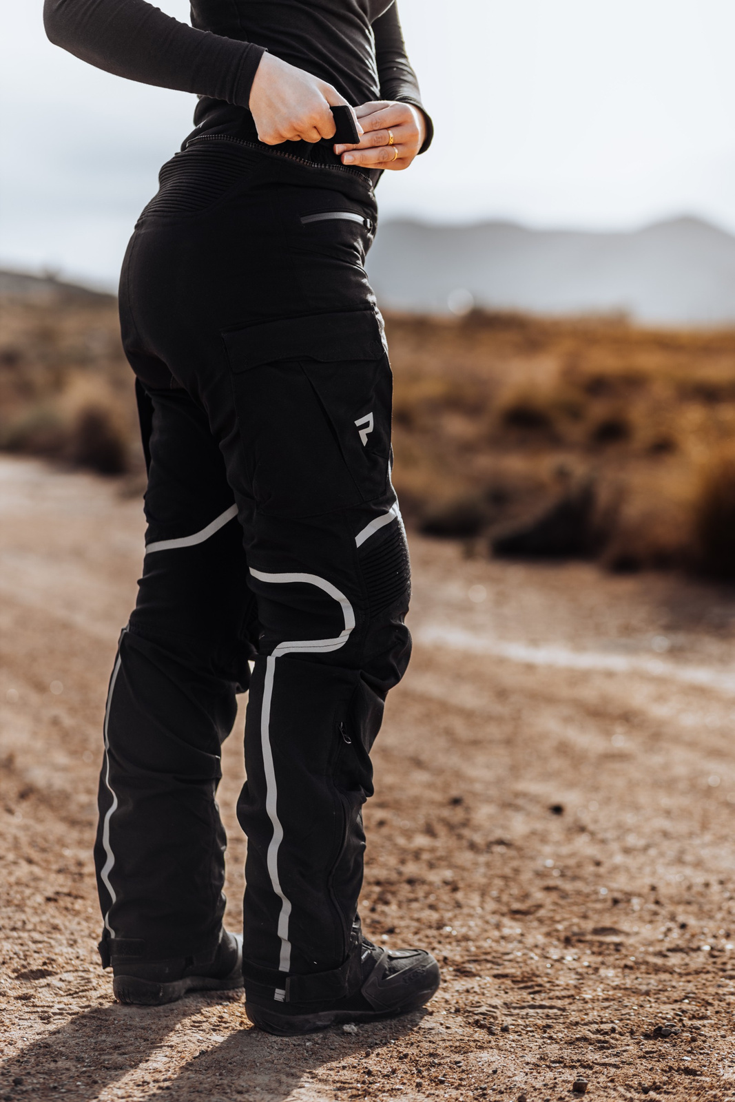 - Zamki łączące typu 8VST (360° oraz krótki), dzięki którym zepniesz spodnie z dowolną kurtką Rebelhorn