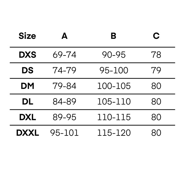 - aby prawidłowo dopasować spodni należy sugerować się podaną tabelą