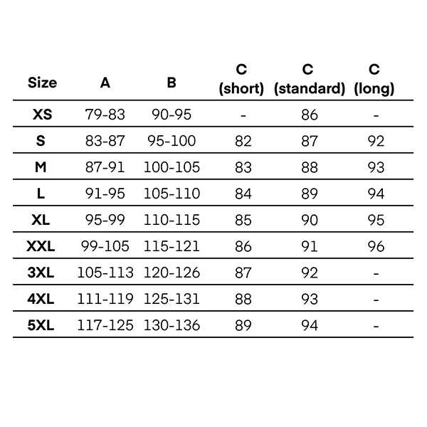 - aby prawidłowo dopasować spodni należy sugerować się podaną tabelą