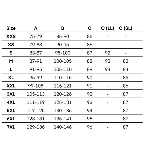 - aby prawidłowo dopasować spodni należy sugerować się podaną tabelą