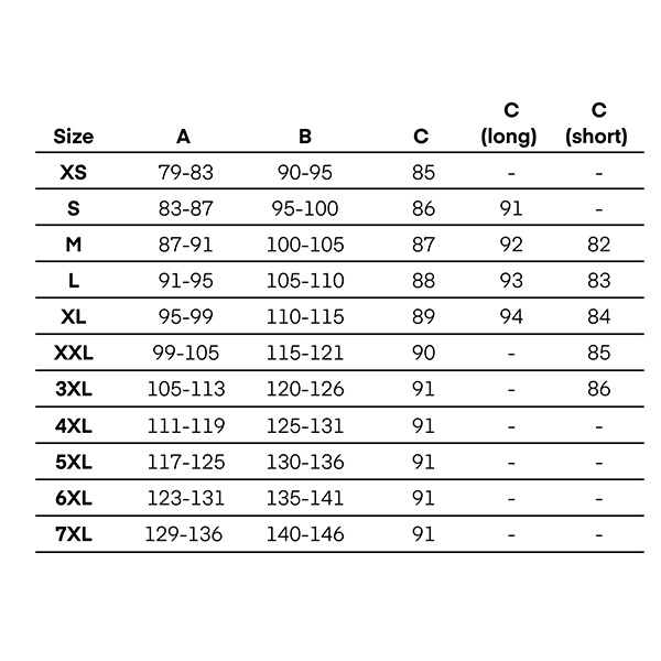 - aby prawidłowo dopasować spodni należy sugerować się podaną tabelą