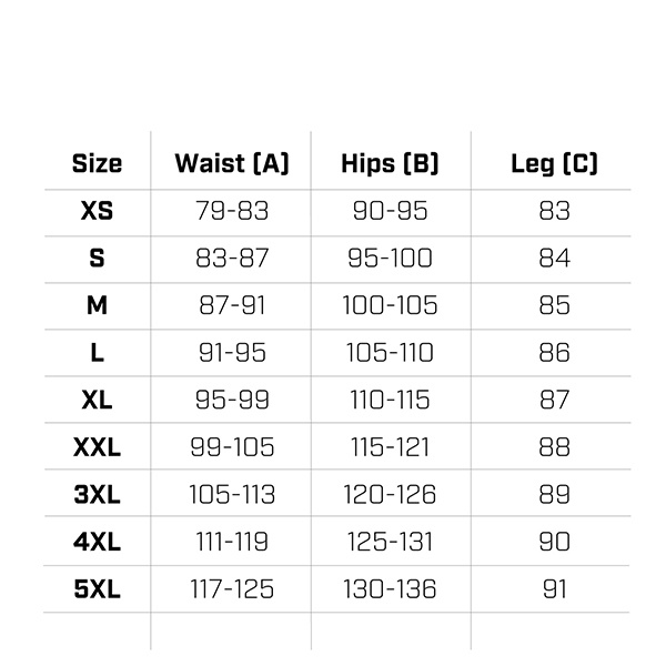 - aby prawidłowo dopasować spodnie należy sugerować się podaną tabelą