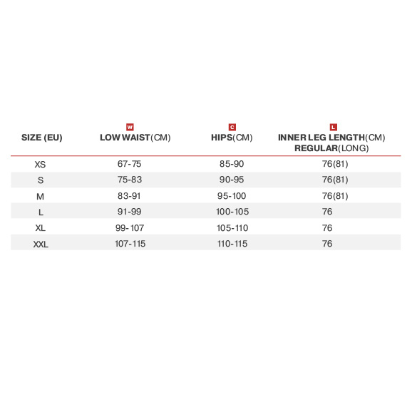 Dostępne w szerokiej rozmiarówce XS-XXL oraz w wersji LONG (XS-M LONG) zadowolą każdą motocyklistkę, a tradycyjny szczupły krój wygląda świetnie na wszystkich typach sylwetki.