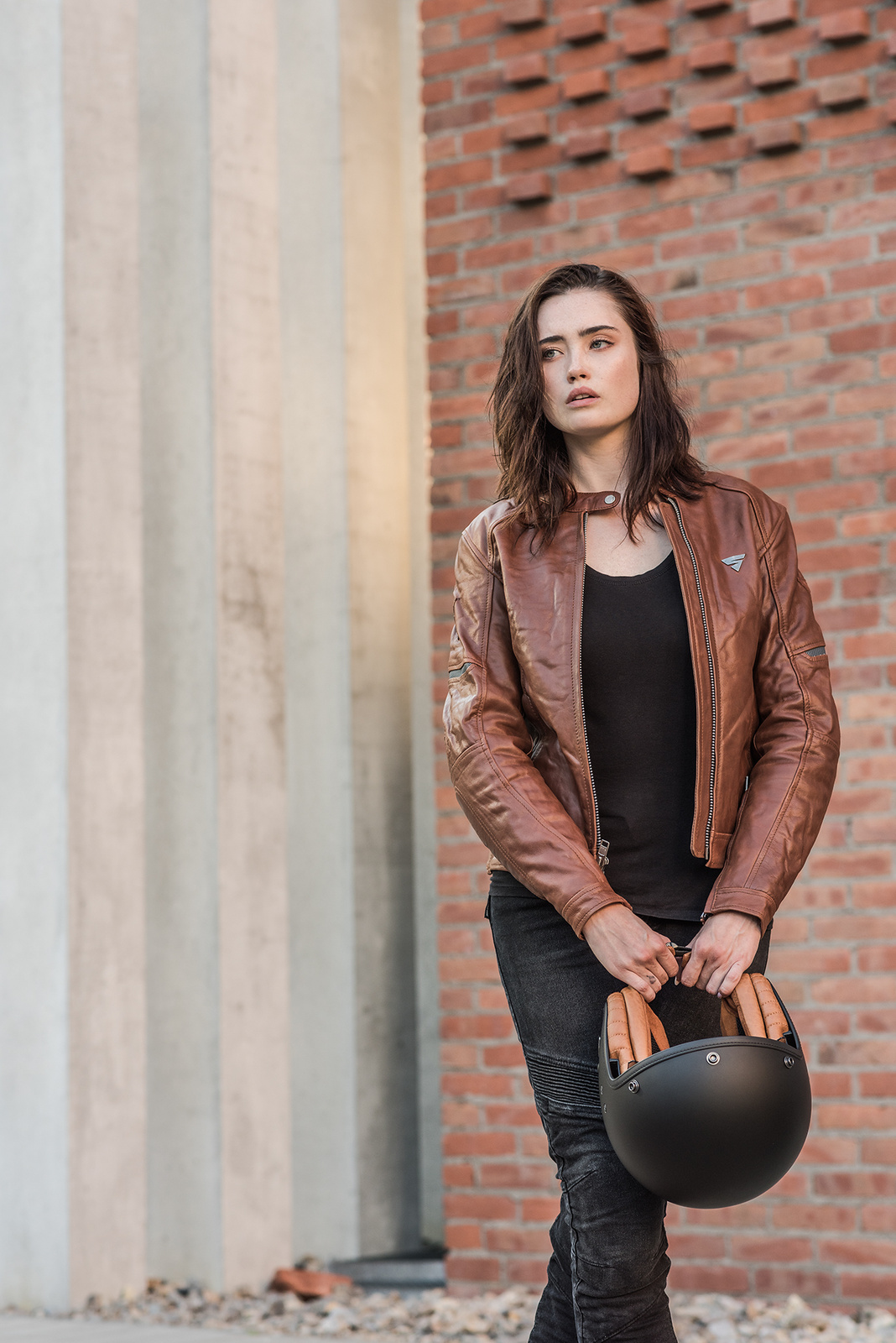 W spodniach damskich JESS kieszeń na protektor otwiera się od zewnętrznej strony spodni, dzięki czemu zaraz po zejściu z motocykla z łatwością można je wyjąć, uzyskując jeszcze większą swobodę ruchu.