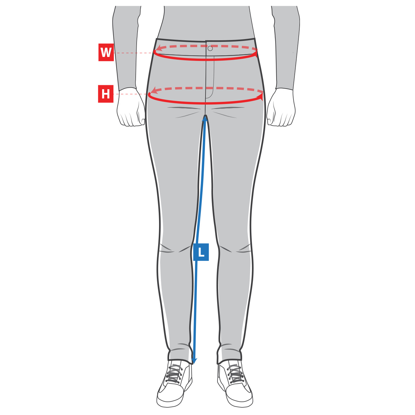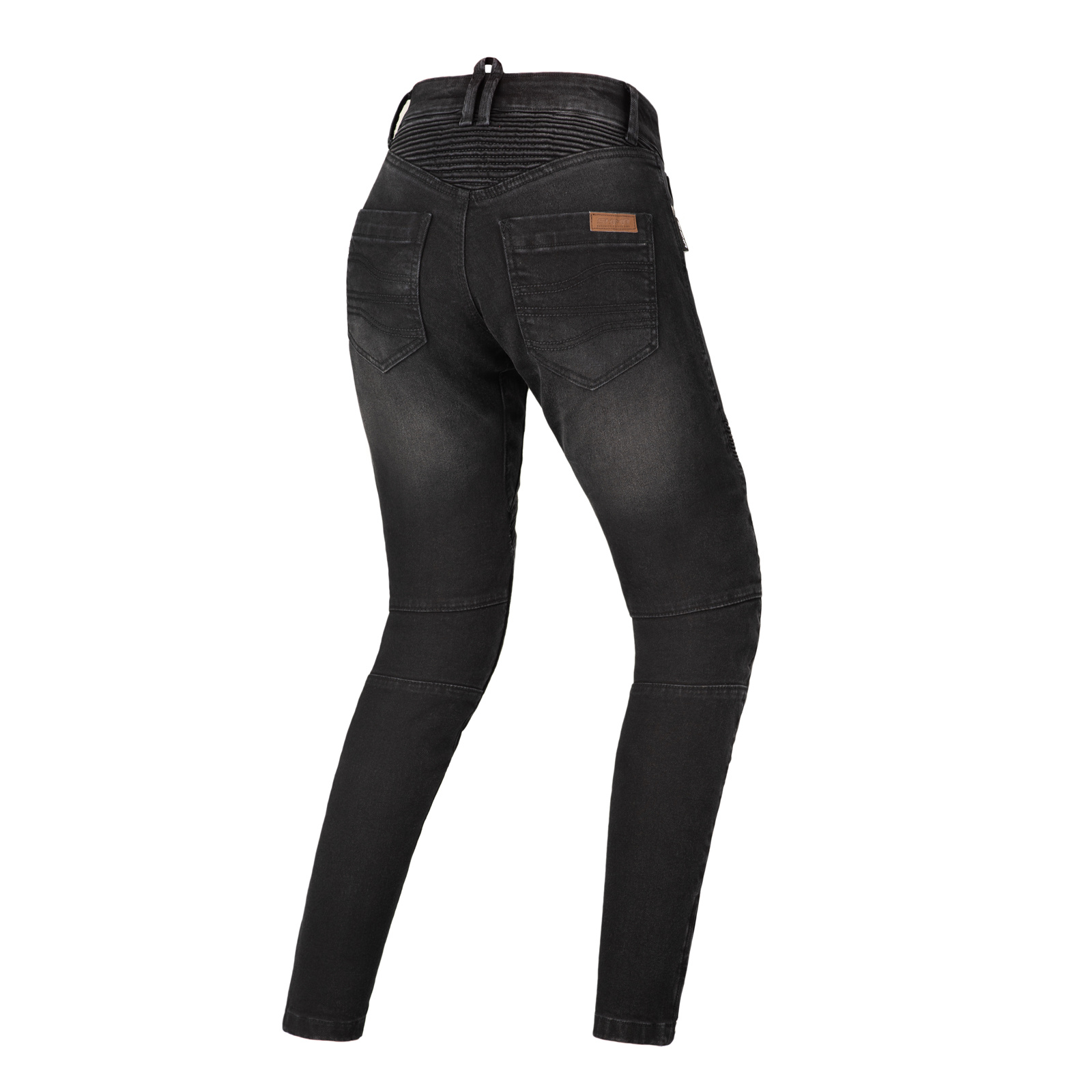 Sylwetka spodni wymodelowana do pozycji motocyklowej z dodatkowymi panelami elastycznymi w obszarze kości ogonowej oraz w obszarze kolan. Protektory kolan umieszczone są w kieszonce z dostępem od zewnątrz, co sprawia, że łatwo można zamienić spodnie w zwykłe jeansy np. na czas pracy.