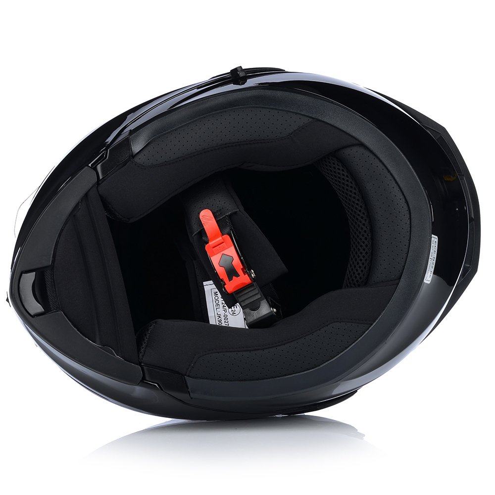 Kask posiada najnowszy certyfikat bezpieczeństwa ECER 22.06 - co oznacza że przeszedł rygorystyczne testy bezpieczństwa i jest dopuszczony do żytku publicznego. Dodatkowym atutem jest to iż kask posiada blendę przeciwsłoneczną chowaną w skorupę kasku, wyjmowane wnętrze i możliwość montażu zestawu głośnomówiącego.